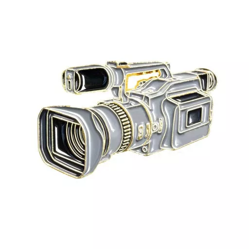 A detailed miniature of the beloved compact camcorder that defined home video and indie filmmaking in the digital age, this hard enamel pin is an ideal gift for anyone nostalgic for the early days of digital video. Crafted from gold-plated brass with a durable hard enamel finish, the pin captures the camera's iconic features. Comes individually packaged with two silver butterfly clasps.