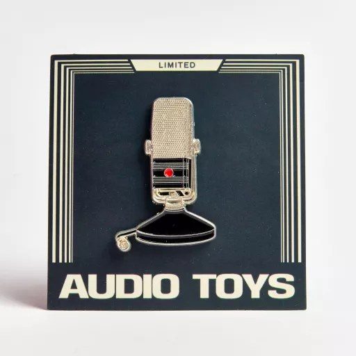 An accurate miniature of the original mic, this enamel pin makes the perfect gift for all sound women, sound men, musicians, field recorders, youtubers, recording engineers, audiophiles, or record producers. Silver plated brass pin with hard enamel. Comes individually packaged with two silver butterfly clasps.